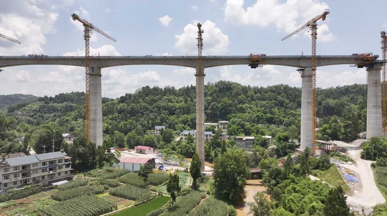 中铁五局成渝中线9标一分部承建的成渝中线高铁田柳湾特大桥全长1644.6米,其中跨越深沟的主跨采用(48+3×80+48)米预应力混凝土连续刚构梁,其中21号墩高79米为全线最高,该桥梁是全线技术难度最大、安全风险最高的控制性工程之一。