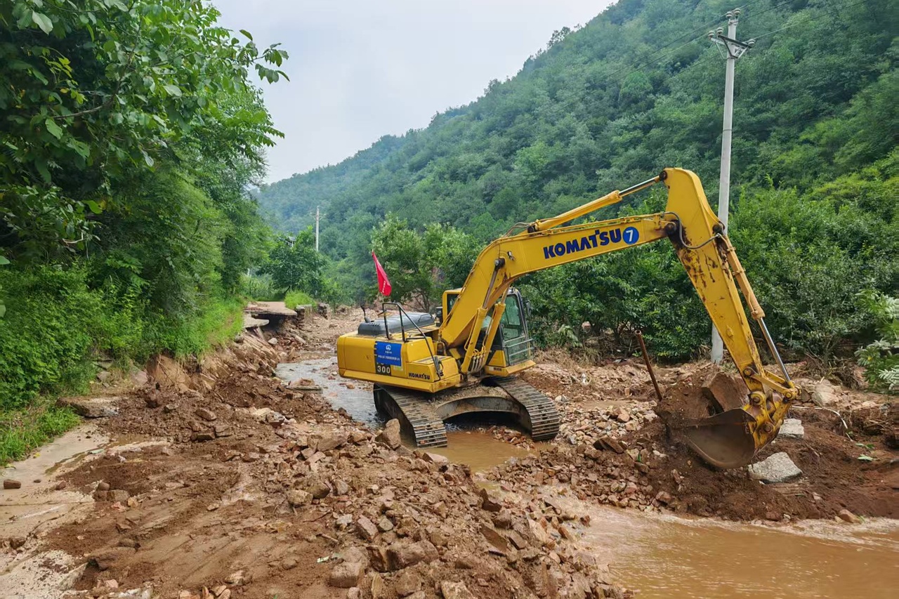副队长刘明涛先带着工友们安置住宿:“住得踏实,干活才有力气。”安置好后,他立刻带队赶往小扎沟——那里的滑坡体挡住了村民出入的路。踩着滑落的乱石、淌着蜿蜒的洪流实地踏勘,他指导挖掘机操作手修复损毁路段,6台挖掘机、3台装载机同时作业,不到两小时将山谷入口道路向深推进1.1公里,修出一条救援车辆通行的4米便道。